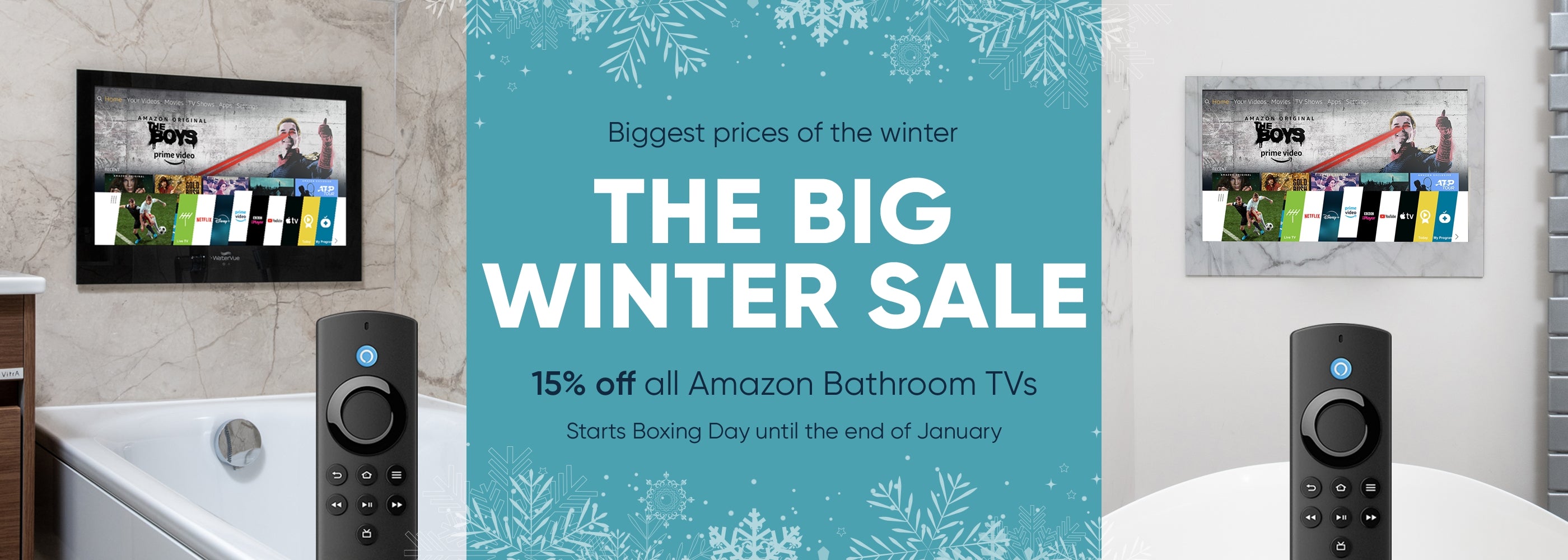 All our bathroom TVs are designed to meet IP65 waterproof rating once they are installed so they are safe to use near water and in steamy environments