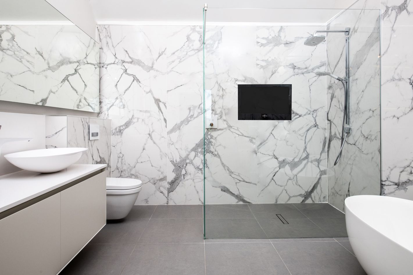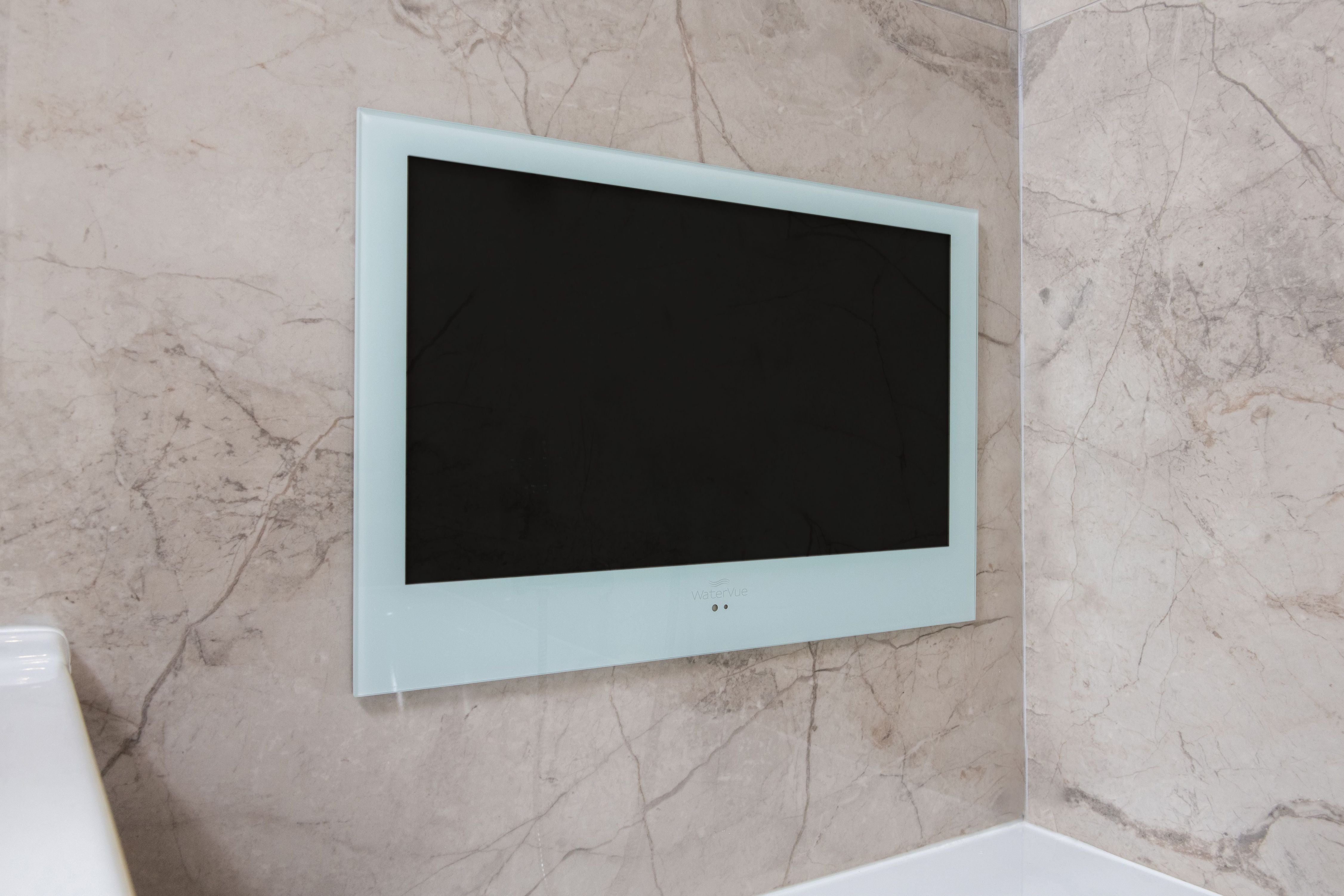 We use vibration speaker technology, cleverly hidden behind the glass. This design allows the TV to remain IP65-rated and ensures it won’t draw in moisture from your bath or shower.