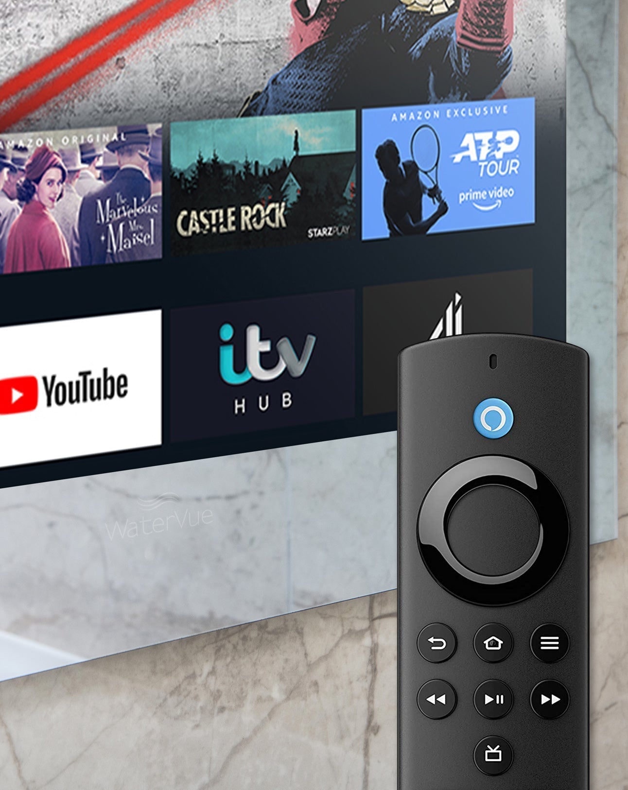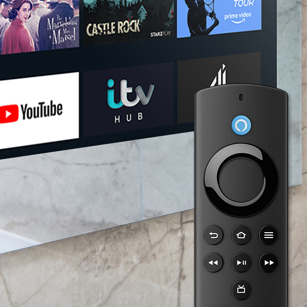- Please note: the Fire TV Stick remote is not waterproof and won’t be covered under warranty. The Power and Volume buttons are also not a compatible feature with our tvs.