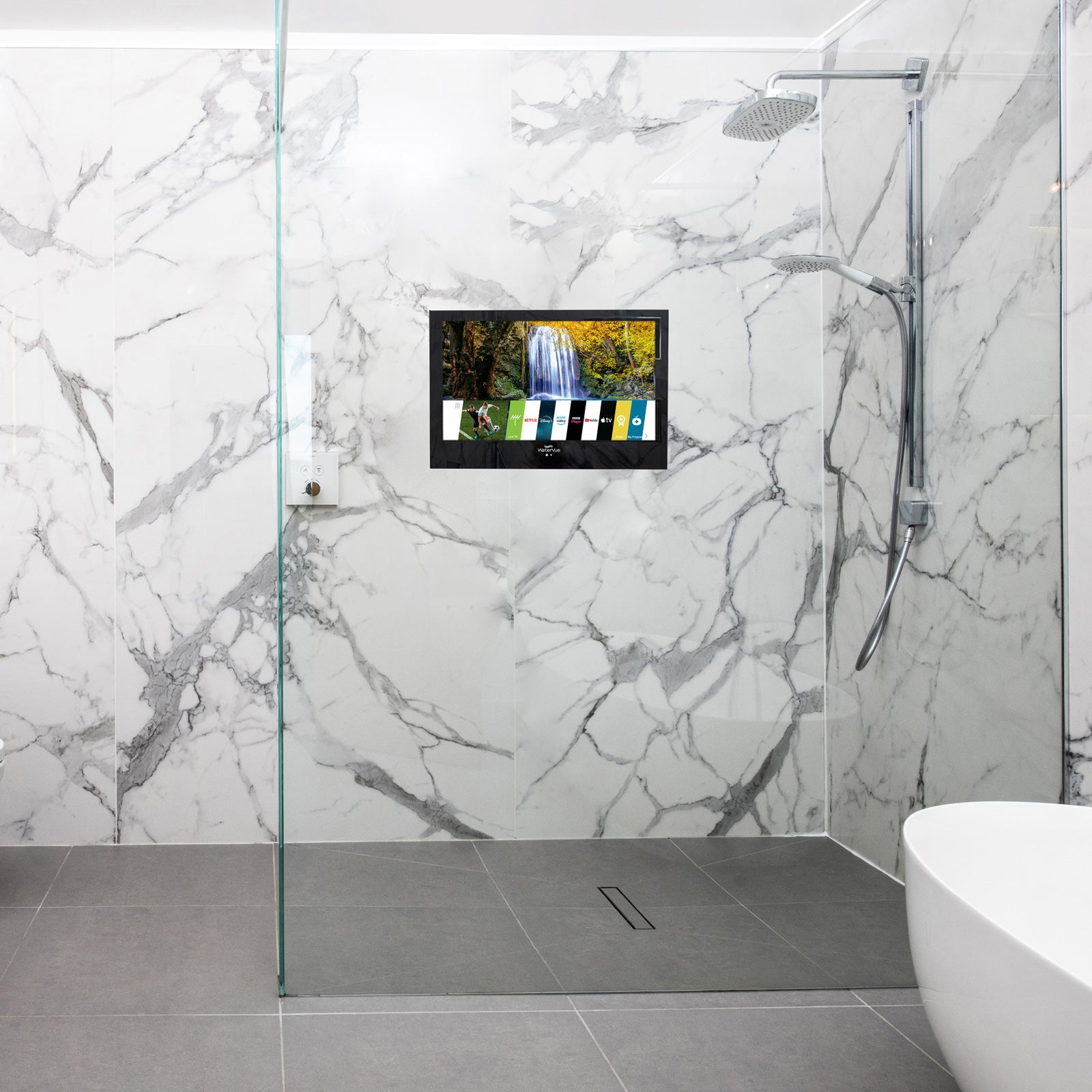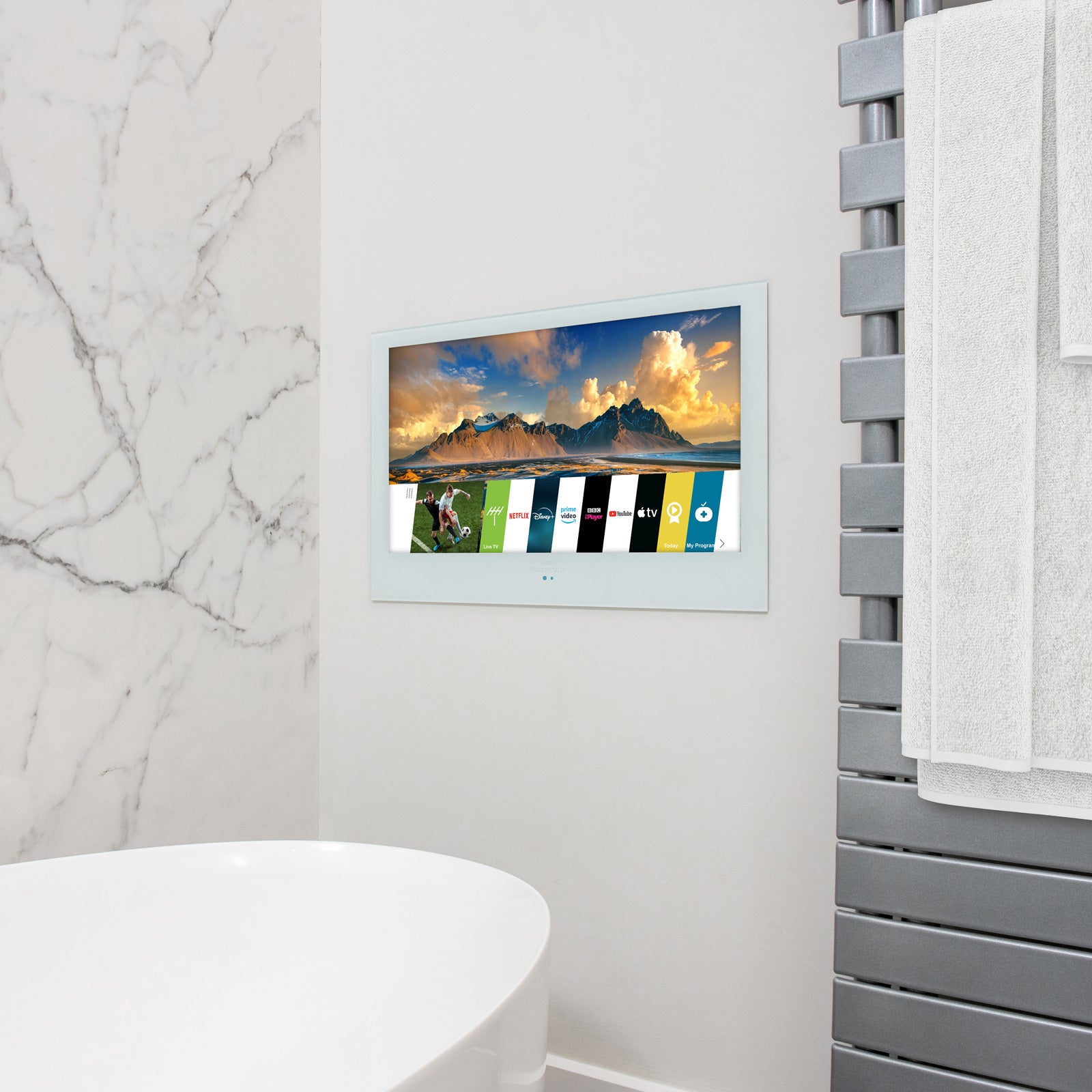 Modernise your bathroom effortlessly with a stylish WaterVue Bathroom TV. The ultimate choice for anyone wanting a bathing experience beyond the ordinary. With easy installation and an IP65 waterproof rating for safety, every TV comes with Freeview, access to streaming apps, invisible built-in vibration speakers and an anti-misting feature.